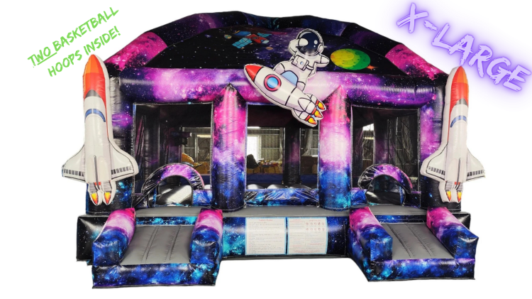 This fun house will keep guests entertained with TWO basketball hoops inside. Make sure you add some of our easy-to-grab soft dodgeballs from the accessories section below.