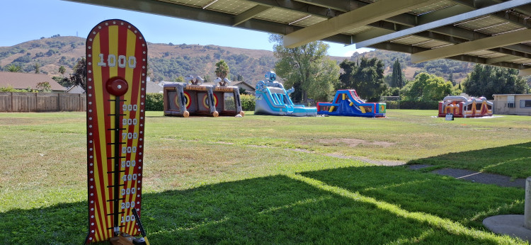 - OCCUPANCY: A maximum of 5-6 kids of equal size at one time for bounce houses, and 1 person at a time for slides is what most inflatable manufacturers recommend.