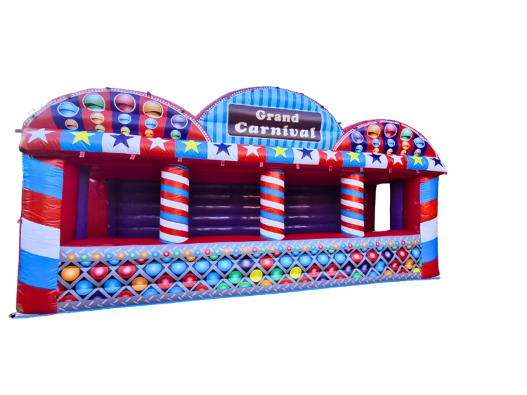 The Grand Carnival Booth is a versatile, multi-purpose unit ideal for ticket sales, registration, fun foods, tabletop games, and more. With its bold, carnival-inspired design, it adds a festive, eye-catching touch and brings the excitement of a fairground to any event.