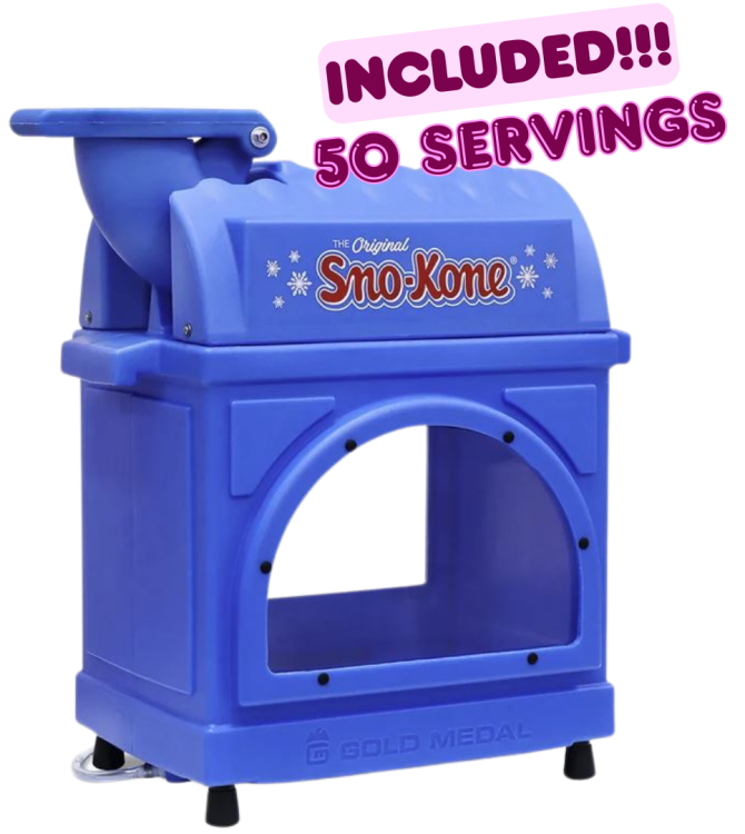 50 servings of flavor syrup and sno conesSNO-CONE MACHINE:50 servings of flavor syrup and sno cones1Hidden12334484_23346620000 The initial rental comes with 50 FREE servings of flavor syrup and snow cones.