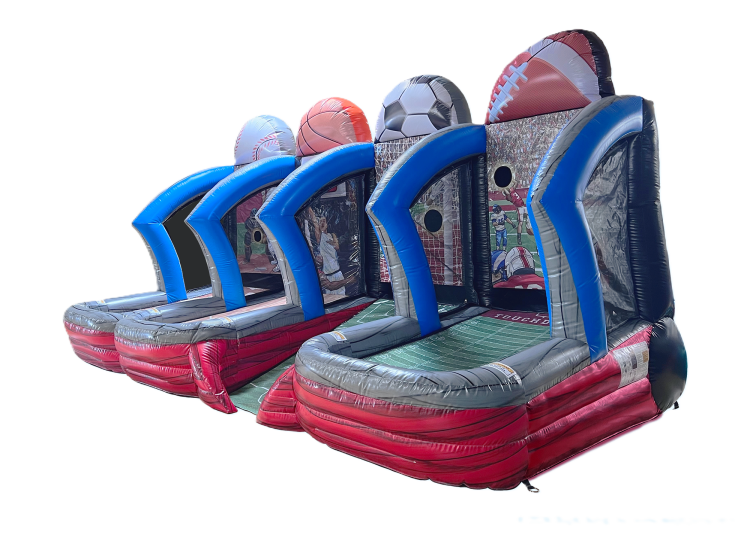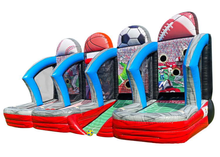 The 4-in-1 Sports Shootout game features four dedicated lanes for Baseball, Basketball, Soccer and Football. It can entertain at least 4 players at a time, making it a great options for larger events. It's large and eye-catching design will surely attract the attention of crowds near and far. It comes with all the balls needed for the games.
