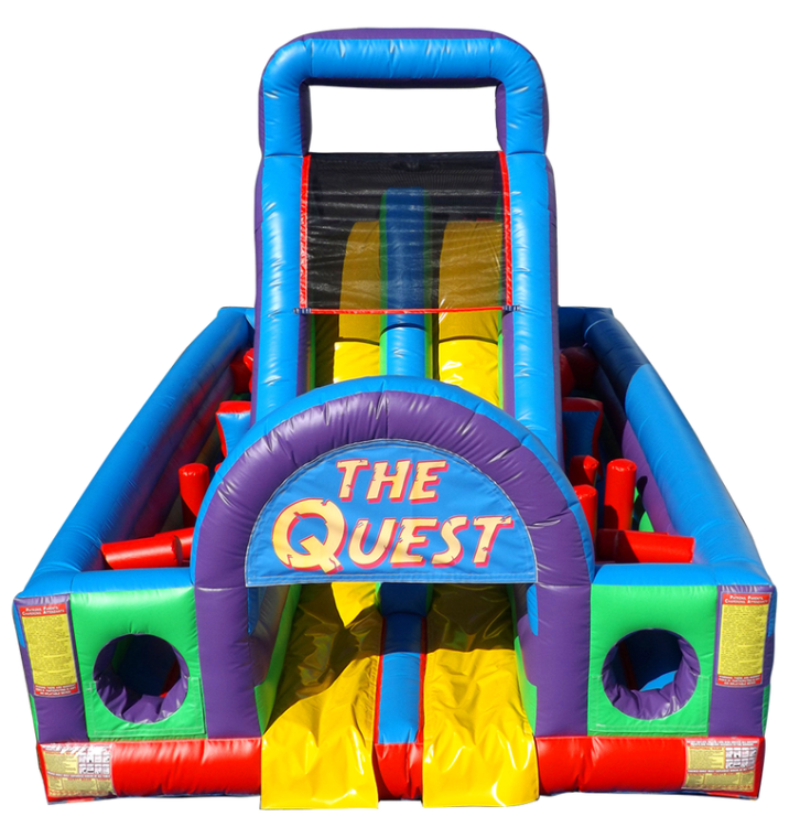 The Quest Obstacle Course accommodates two players at a time! Participants race through the 28-foot course, make a 180-degree turn, and climb up to a 15-foot slide that brings them right back to where they started. That is 56ft of actual fun!